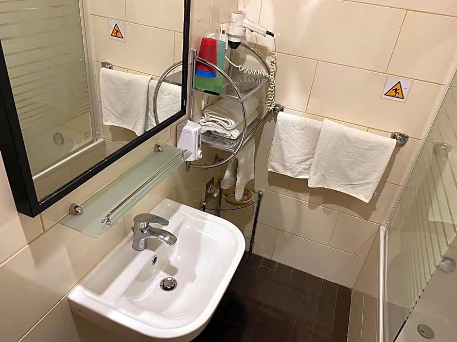 Tower rooms with stylish décor, cherry wood furniture, comfortable beds, parquet floor, bathroom with large shower or bathtub, free TV channels, mini-bar, safe, hairdryer. Air conditioning is available at no charge.Our air-conditioner works only during the summer. We have heating during the winter.